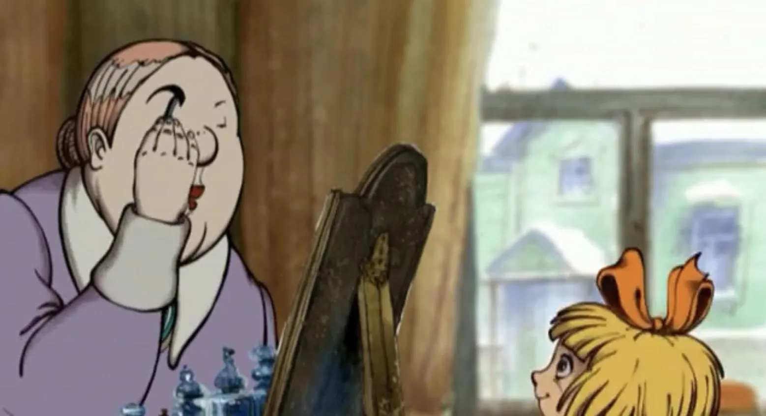 Маленькой девочке на прогулке так хочется улизнуть от бдительной толстой неповоротливой няни и хоть один разочек скатиться с гигантской горы на санках вместе с другими ребятами!